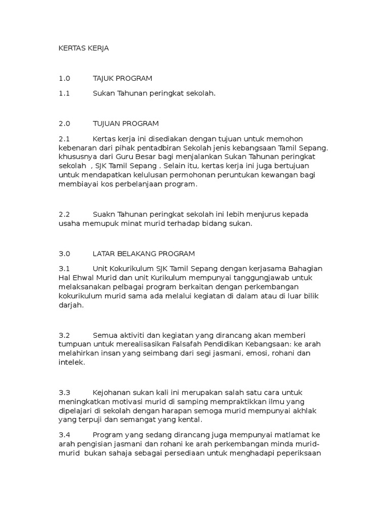 Contoh Kertas Kerja Program Documents Tips